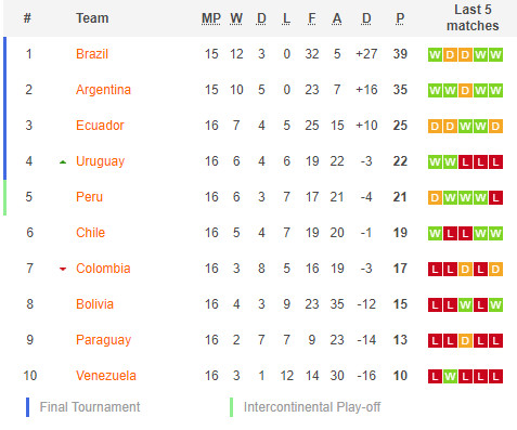 15/10/21 แพ้ โบลิเวีย 0-4 (เยือน) คัดบอลโลก 2022 / เสมอ ... เสีย