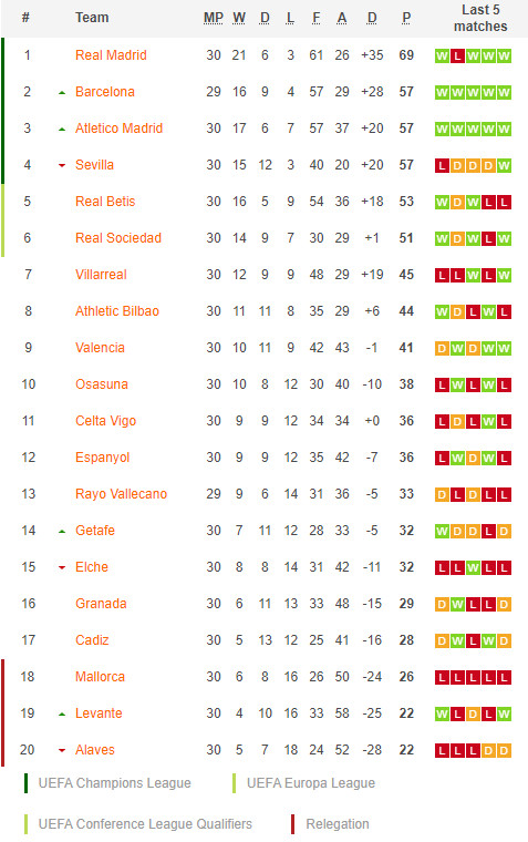 06/03/22 แพ้ บาเลนเซีย 1-3 (เยือน) ลา ลีกา / รอง 0.5 ... เสีย