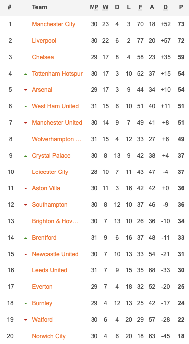 07/04/22 แพ้ เบิร์นลี่ย์ 2-3 (เยือน) พรีเมียร์ลีก / เสมอ...เสีย
