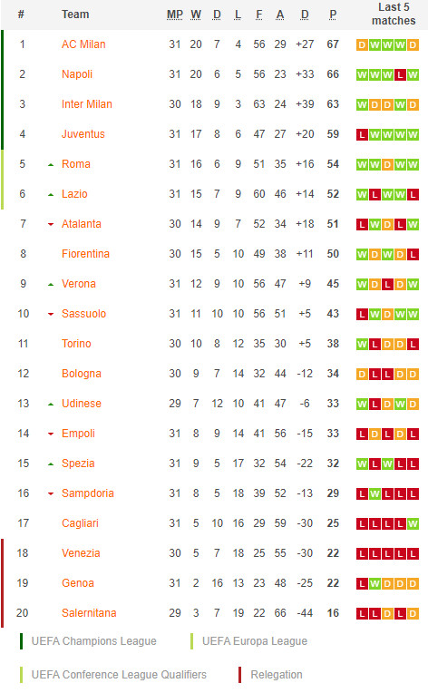 04/04/22 แพ้ อินเตอร์ มิลาน 0-1 (เหย้า) เซเรีย อา / เสมอ ... เสีย