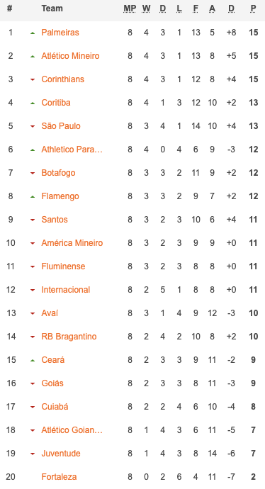 อเบล เฟอร์เรร่า กุนซือชาวโปรตุเกสเลยของพัลไมรัสเจ้าบ้าน ดูกับเกมนี้ก็ยังไม่มีตัวแบนหรือเจ็บที่ดูลงสนามวันนี้มาเต็มหมดเล่น 4-2-3-1 นายทวารเฝ้าเสาเองใช้ มาร์เซโล่ ลอมบ้า ส่วนแนวรุกทีมมี ราฟาเอล ไวก้า ทำเกมกับหัวหอกลงยิงใช้ โรนี่ บาร์บอสซ่า