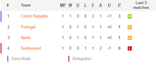 เช็ก (3-4-2-1) : โทมัส วาคลิก - ดาวิด ซิม่า, ยาคุบ บราเบ็ค, ลาดิสลาฟ เครย์ซี่ - วลาดิเมียร์ คูฟาล ,โทมัส ซูเช็ค, มิชาล ซาดิเล็ก, ยาโลสลาฟ เซเลนี่ - ยาคุบ ยังค์โต้, อดัม โลเช็ค - ยาน คุชต้า