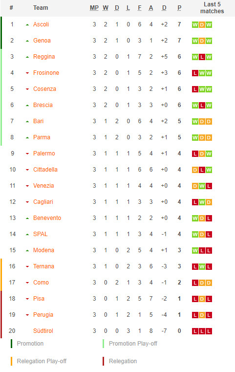 14/08/22 แพ้ โฟรซิโนเน่ 0-1 (เหย้า) เซเรีย บี / ต่อ ปป ..เสีย