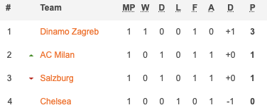 06/09/22 แพ้ ดินาโม ซาเกร็บ 0-1 (เยือน)