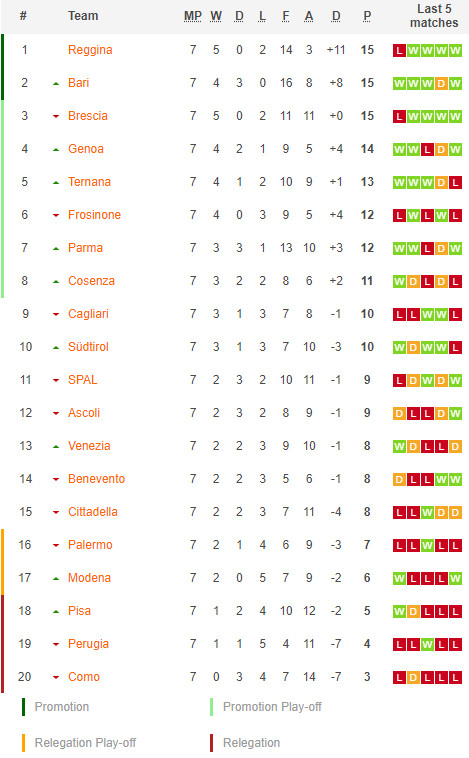 17/09/22 แพ้ บารี่ 0-1 (เหย้า) เซเรีย บี / ต่อ 0.5 ...เสีย
