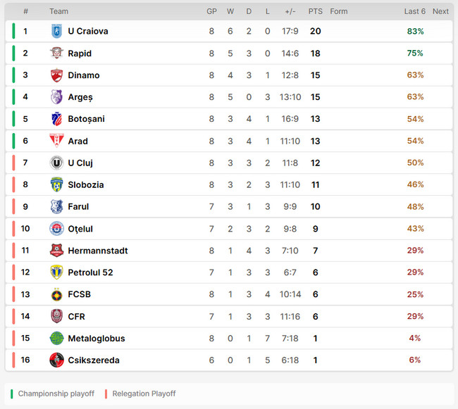 25/08/25 แพ้ เฮอร์มันน์สตัดต์ 0-1 (เยือน) โรมาเนีย ลีก้า วัน / เสมอ ... เสีย