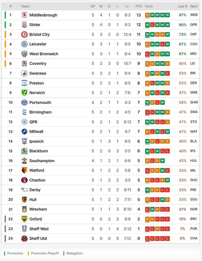09/08/25 ชนะ อ๊อกซฟอร์ด 1-0 (เยือน) แชมเปี้ยนชิพ / เสมอ ... ได้