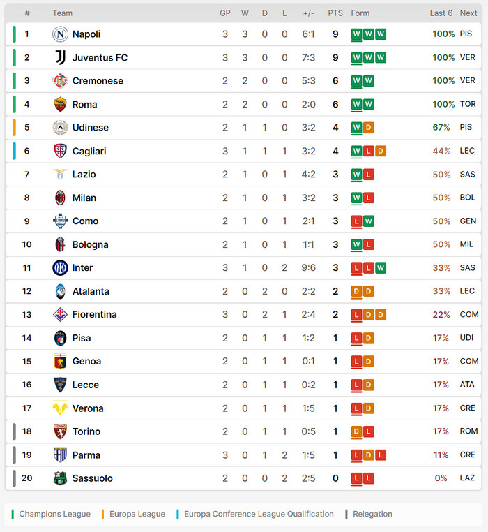 30/08/25 แพ้ เอซี มิลาน 0-2 (เหย้า) เซเรีย อา / รอง 1 ...เสีย