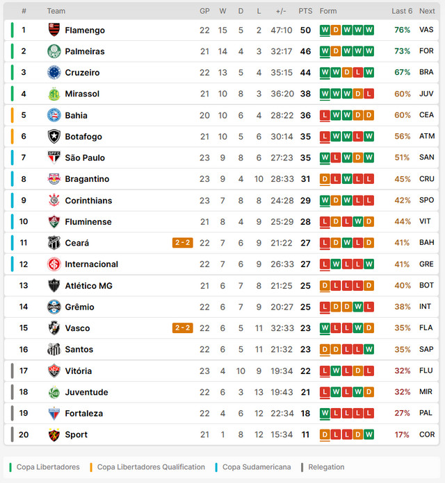19/08/25 แพ้ มิราสโซล 1-1 (เยือน) บราซิล ซีรี่ เอ / เสมอ ... เจ๊า