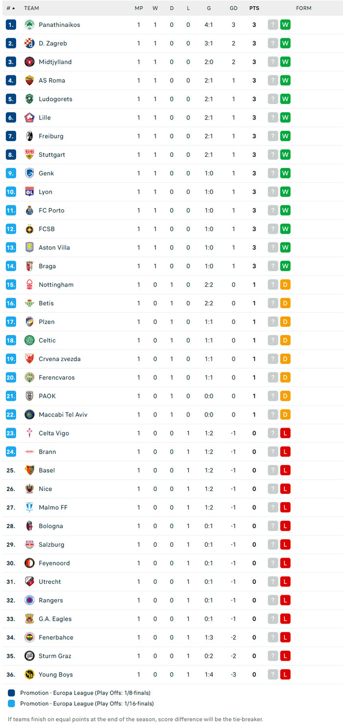 26/09/25 ชนะ บรานน์ 2-1 (เหย้า) ยูโรป้า ลีก / ต่อ 1 ... เจ๊า