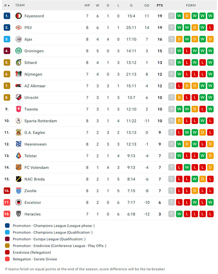 21/09/25 แพ้ โกรนิงเก้น 0-2 (เยือน) พรีเมียร์ดัตช์ / รอง 1 ... เสีย