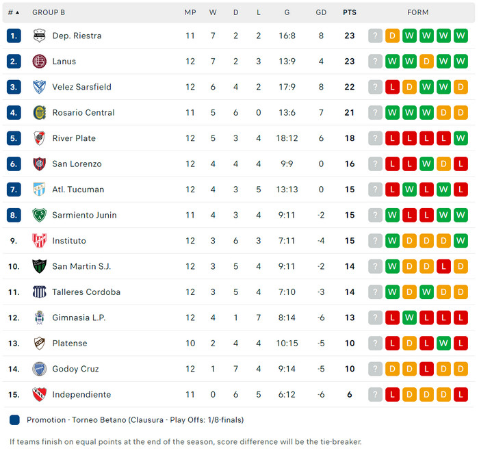 ฟอร์มเกมเหย้าในลีก แข่ง 5 ชนะ 1 เสมอ 3 แพ้ 1 ได้ 5 เสีย 6 (ตอร์เนโอ เคลาซูร่า)