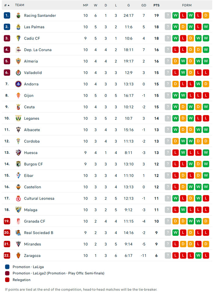 13/10/25 แพ้ เรอัล บายาโดลิด 0-1 (เหย้า) เซกุนด้า / เสมอ...เสีย