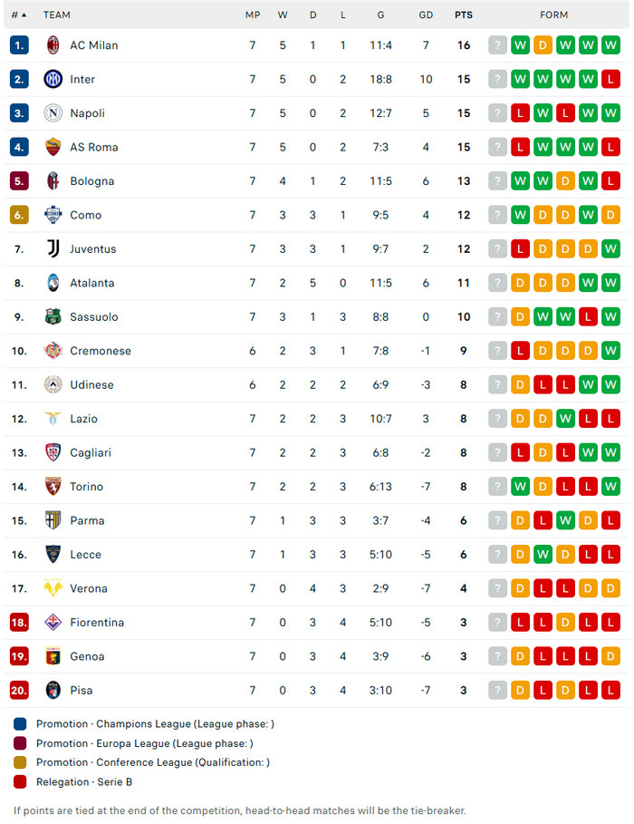 14/09/25 ชนะ ปิซ่า 1-0 (เยือน) เซเรีย อา / เสมอ ...ได้