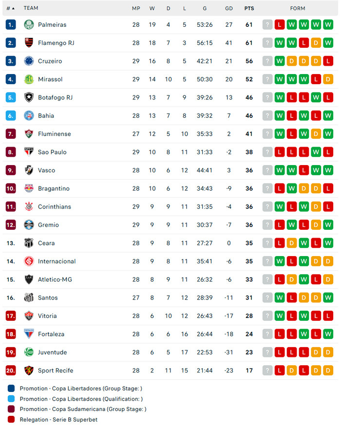 21/09/25 แพ้ ฟลูมิเนนเซ่ 0-1 (เหย้า) บราซิล ซีรี่ เอ / เสมอ ... เสีย