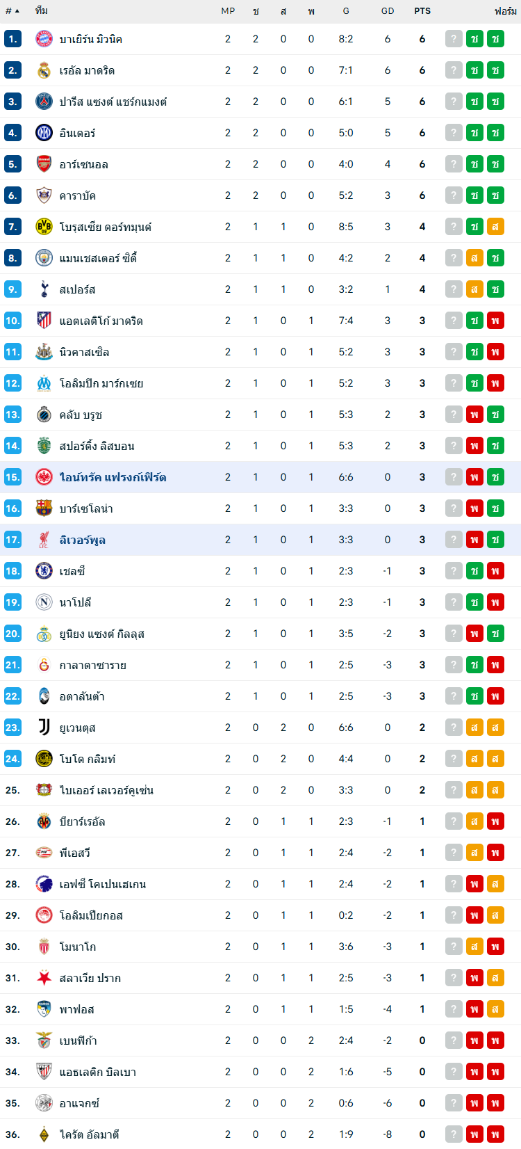 01/10/25 ชนะ ปาฟอส 5-1 (เยือน)แชมเปี้ยนส์ลีก / ต่อ 2.5 ... ได้