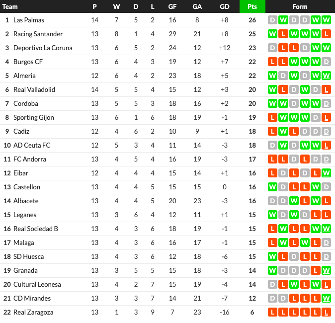 20/10/25 แพ้ ราซิ่ง ซานตานเดร์ 1-2 (เยือน) เซกุนด้า / รอง ปป ... เสีย