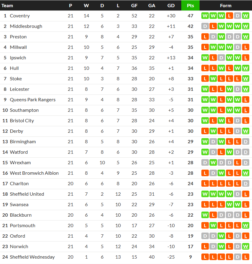 13/12/25 แพ้ สโต๊ค 1-2 (เยือน) แชมเปี้ยนชิพ / รอง 0.25 ... เสีย