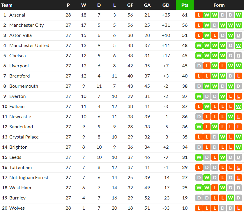 22/02/26 แพ้ ฟูแล่ม 1-3 (เหย้า) พรีเมียร์ลีก / เสมอ ... เสีย