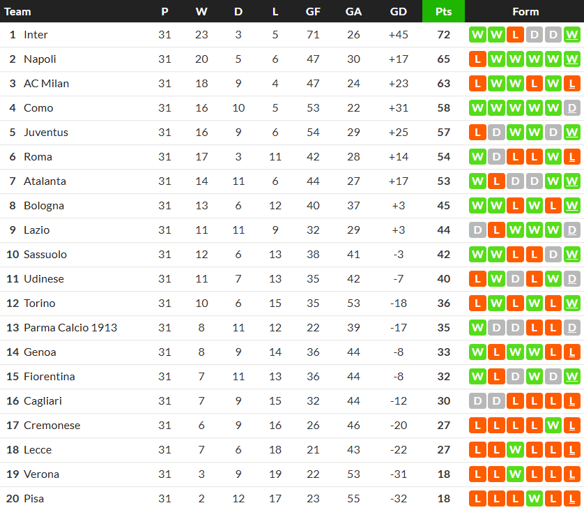 08/03/26 ชนะ ปิซ่า 4-0 (เหย้า) เซเรีย อา / ต่อ 2 ... ได้